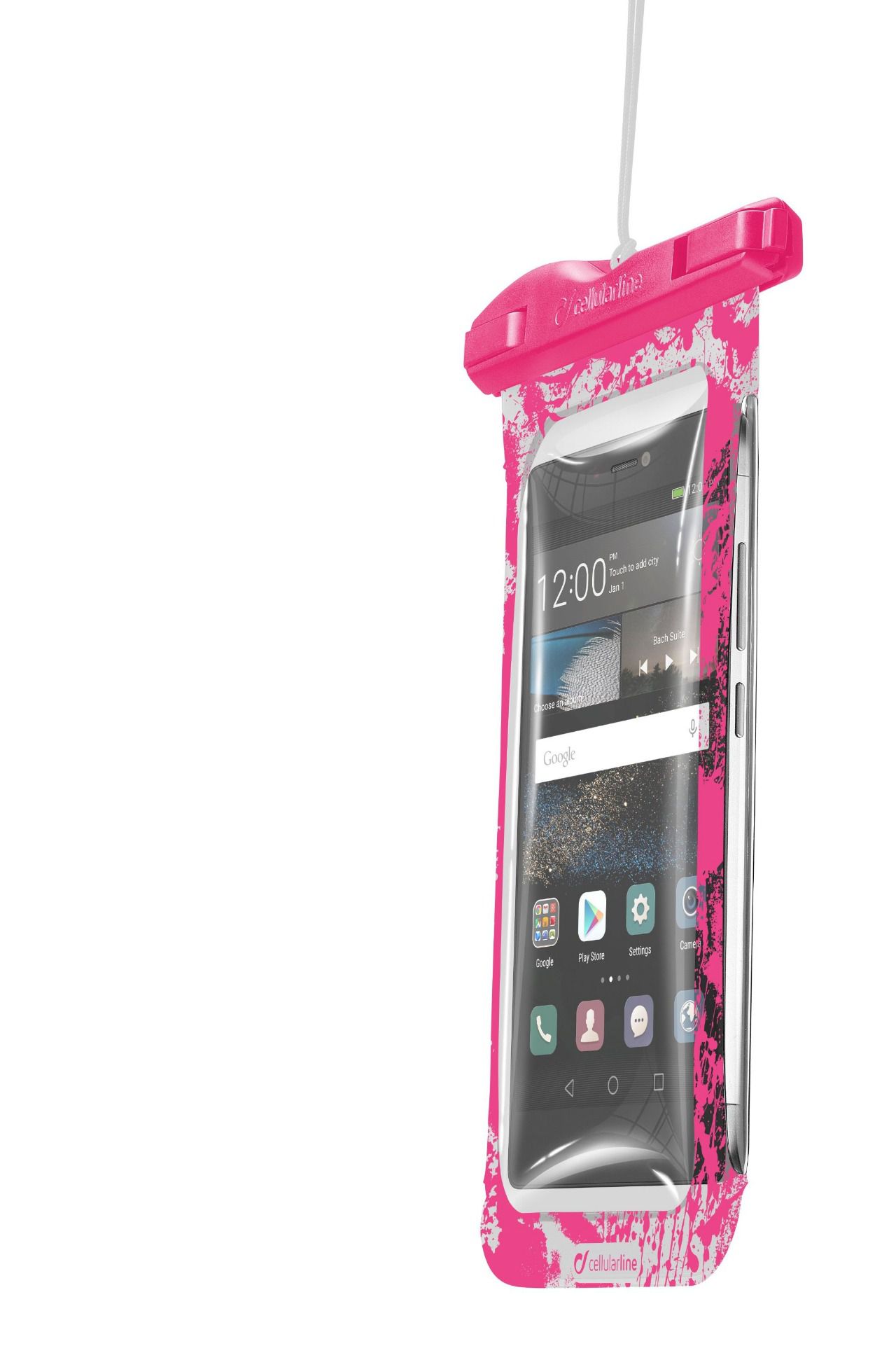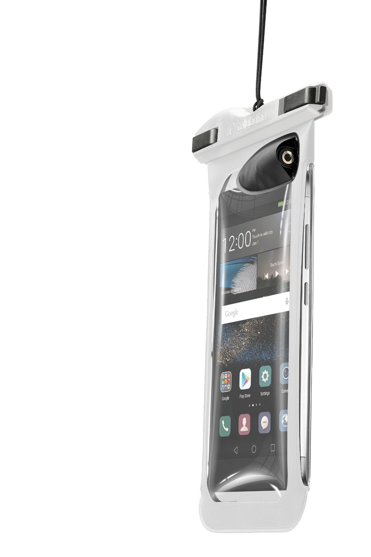 VOYAGER MUSIC es una funda impermeable con conector Jack 3.5mm para auriculares, ideal para disfrutar de la playlist del verano en el smartphone sin temor al agua de la playa o la piscina. También es perfecto para hacer fotos, responder llamadas, chatear con tus amigos y mucho más, sin tener que sacar el smartphone de la funda. Cuenta con certificación IPX8 de protección contra el agua incluso en casos de inmersión a 20 metros de profundidad. Además de una banda de agarre en el reverso de la funda, en el interior incorpora un práctico bolsillo extraíble, útil para guardar billetes y monedas. Es compatible con teléfonos móviles de hasta 5,7”.