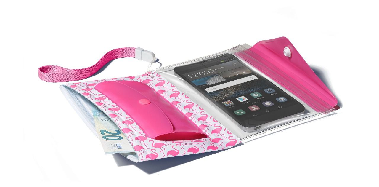 La certificación IPX4 garantiza protección e impermeabilidad a los chorros de agua, mientras que el bolsillo transparente hermético protege el teléfono de arena y cremas solares, lo que permite utilizar todas sus funciones sin sacarlo de la funda. Tiene un práctico lazo de pulsera, perfecto para tenerla siempre al alcance de mano sin correr el riesgo de perderla. Además, gracias a los cómodos bolsillos internos, podrás guardar monedas, billetes, tarjetas y llaves. Voyager Pochette está disponible en cuatro combinaciones de color diferentes.