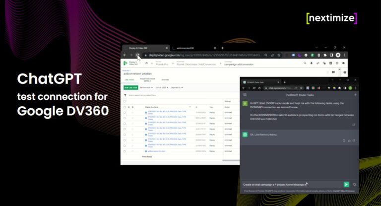 La empresa española [nextimize] conecta ChatGPT, el famoso chatbot de IA de OpenAI, con la plataforma publicitaria de Google Display y Video 360 mediante su tecnología de addconversion. Esta innovación permite la creación de estrategias de campaña y la optimización de resultados, mostrando las habilidades de integración de datos y automatización de AddConversion. Con tecnologías como esta, la gestión de publicidad en los medios puede cambiar con la llegada de la IA y la automatización. [Nextimize] presenta una plataforma adaptable y escalable que se integra completamente con el DSP de Google, permitiendo la gestión automatizada y aplicación de inteligencia artificial avanzada y personalizada en la publicidad.
